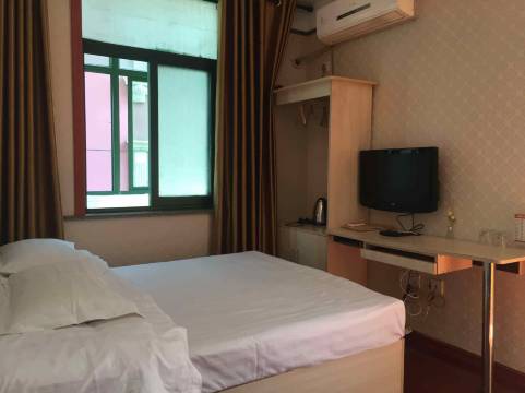 房间大小适中,带窗户,空调、电视、水壶、吹风机都有,房间干净整洁,卫生间无异味,门口停车方便,空调效果也不错。略微有点不足的是拖鞋只有一双,其他尚可。