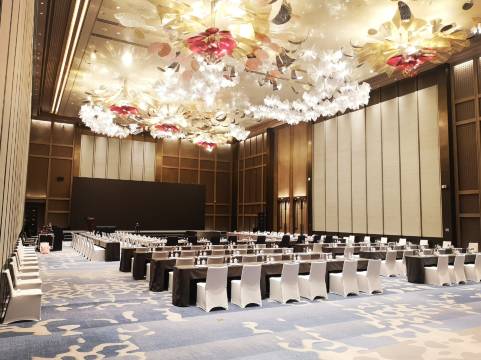海天大酒店拥有大型宴会厅,面积 2600平方米,层高18米,具备承接国际首脑会议等高级别会议的条件。拥有10个规模不等的会议室及多功能厅,均配备全智能化影视厅设备及高速网络。独有一线观海会议厅廊,为您的会议提供耳目一新的空间体验。
