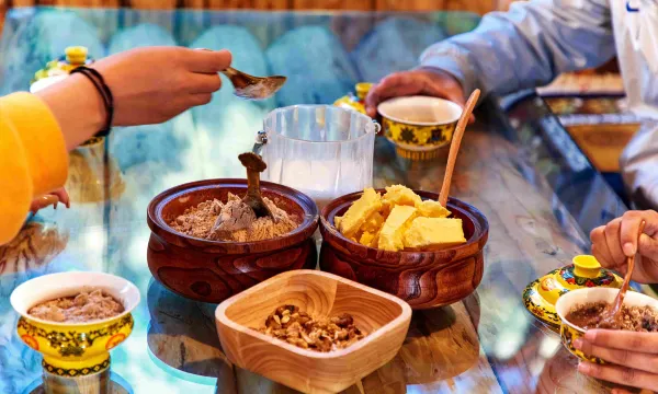 位置绝加,很有藏式风情,餐饮下午茶价格合理。确实是奶子沟最佳的选择。对面山上就是嘎尔庄园,可以俯看整个藏寨。早点就在住宿一楼很方便