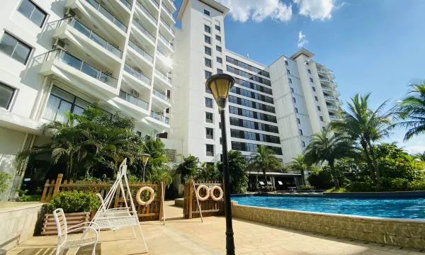 房间的设施很完善,卫生也很好,有泳池,孩子很喜欢玩,前台的服务也很好,整体各方面都很满意,酒店还有个咖啡厅,品类也很多,味道也不错