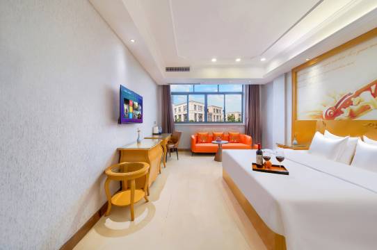 客房内,宽敞明亮的空间搭配着精致的装饰,让人瞬间沉浸在宁静与舒适之中。窗外,城市的繁华与喧嚣仿佛被隔绝在外,而窗内,却是宁静与安详,让人忘却尘世烦恼,尽享美好时光。