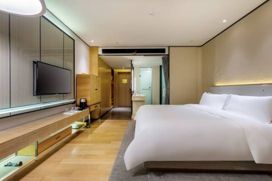 酒店位置方便,从南站过来非常近,房间简约大方,卫生打扫得很干净,设施齐全,热水充足,空调制冷/制热效果好,住着很舒心,性价比高,带早餐品种多,干净卫生,很推荐大家入住。