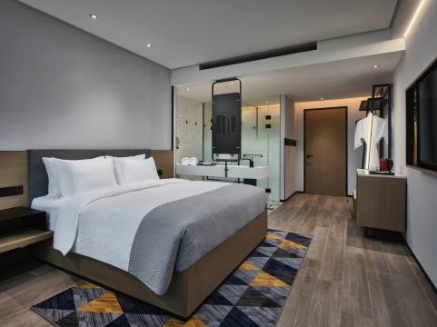 酒店客房沐浴产品选用意大利百年经典品牌“ACCA KAPPA”芳香怡人。舒适的超大床垫全部采用全球知名寝具品牌;所有客房配套50寸数字高清液晶电视,并为您带来手机与电视互动投屏一键切换的顺畅体验;卫浴配备热带雨林沐浴系统。高级豪华房型及以上配备迷你吧赠饮(首晚赠送)、智能马桶、干湿分离,高品质羽绒被芯加亲肤级床上用品为您带来越级式入住体验。