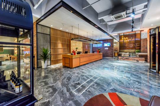本酒店是将咖啡馆文化与酒店相结合的中端酒店品牌。创造了24小时Café+Hotel+Galleria的Coffetel理念,融合咖啡厅、文化书吧、艺术品长廊、商品展览区、自助餐厅为一体的多功能配套酒店大堂,打造一个充满社交、格调的氛围,可以容纳各种文化、各种思想的多元化场所,为商旅顾客营造“旅途中的啡凡存在”体验。