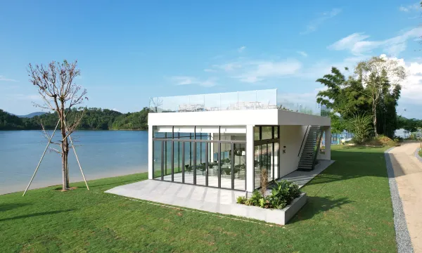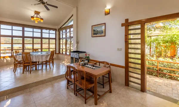百子围酒店的渔家小院,枕山环水,居于自然之间,以山湖之景为幕,以万绿湖渔乡文化为底蕴,打造出人文和谐共生的空间。整体围绕内湖泊面朝万绿湖错落有致地排列在碧澄的湖面,渔家小院隐于山湖中,一栋一视角,一步一景观。 渔家文化贯穿始终,宾客在此不光能感受到山湖之美,还能领略客家文化的深厚积淀。