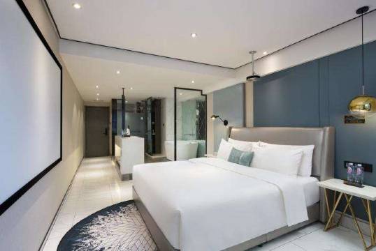 酒店配备全景落地窗街景尽收眼底,化妆镜、新风系统、进口柔软床垫、日用品完善,配有精选的一次性用品:牙刷、牙膏、梳子、香皂、洗手液、洗发水、沐浴露、浴帽等日常用品。酒店配置设备齐全,拥有液晶电视机、衣柜、衣橱、电热水壶、24小时热水、自助洗衣房,免费停车场等,高端舒适的入住环境,让您随时拥有活力时刻!