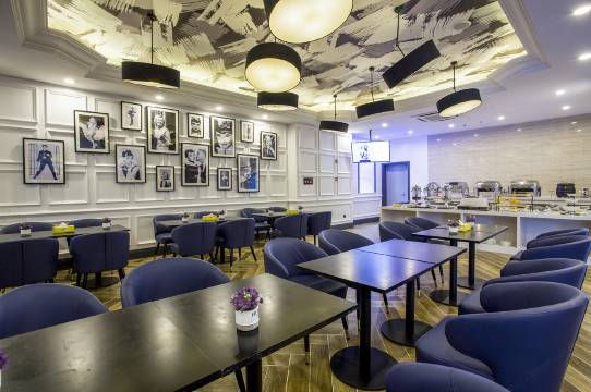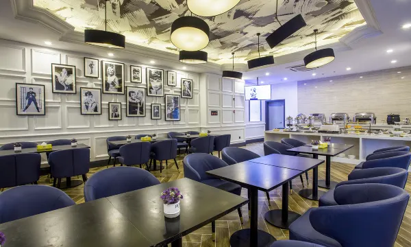 酒店位于国展路,周围餐饮、娱乐等生活配套齐全,出行便利。 这全部客房配有POLA洗漱用品。兰欧酒店秉承ART Service的服务理念,让您在旅途中享受到家的温馨。兰欧酒店甄选了一批兰大使,他们提供艺术向导,体面出行,惊喜制造官,城市使者等特色服务,为每一位住客营造一段艺术、品质、精致与情趣的商旅时光。 酒店由国际知名设计团队TBDC倾力打造,拥有艺术客房、时尚餐厅,众创空间,零售区、阅读区及大英博物馆艺术品鉴区。承接尚美生活集团H+的集团战略,在有限空间内实现大坪效,满足商旅用户的多种需求。 兰欧酒店的大厅以穹顶的形式作为主体设计,以几何形状的镜面提升整体空间纵深,为空间构建大气,时尚的视觉氛围。穿过大厅,圆形设计的艺术中心是兰欧艺术商旅特色的点睛之处。酒店提供精致的属地早餐与英式下午茶,早餐区自然采光良好,可同时容纳200人就餐。