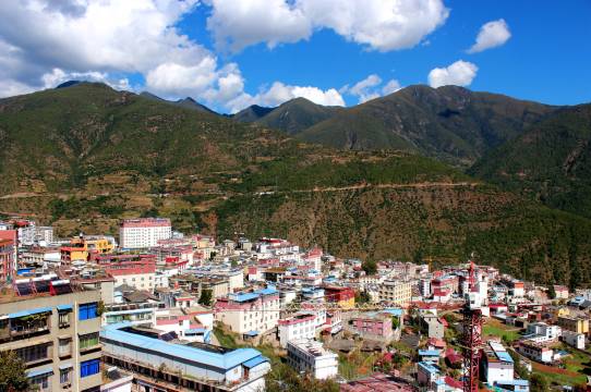 房间干净卫生。可以在六楼茶房拍摄木里县街景。