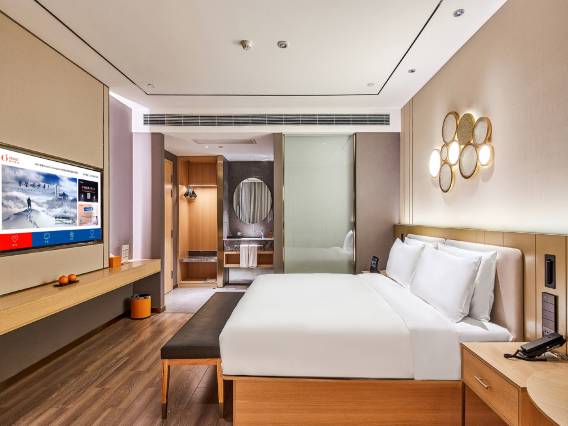 酒店对所有会员也有着贴心的服务,入住赠送贴心伴手礼、现磨咖啡即冲享用、丰富的中西式自助早餐还可以享用到上午11点。酒店内部采用智能化生活方式、人体感应灯控制系统、智能机器人等。酒店停车位多达400余个,停车极其便利,还配有超级充电桩服务,受到许多开能源车用户的好评和推荐。超高品质的硬件品牌设施,超强的隔音系统都将给您带来不一般的入住体验!