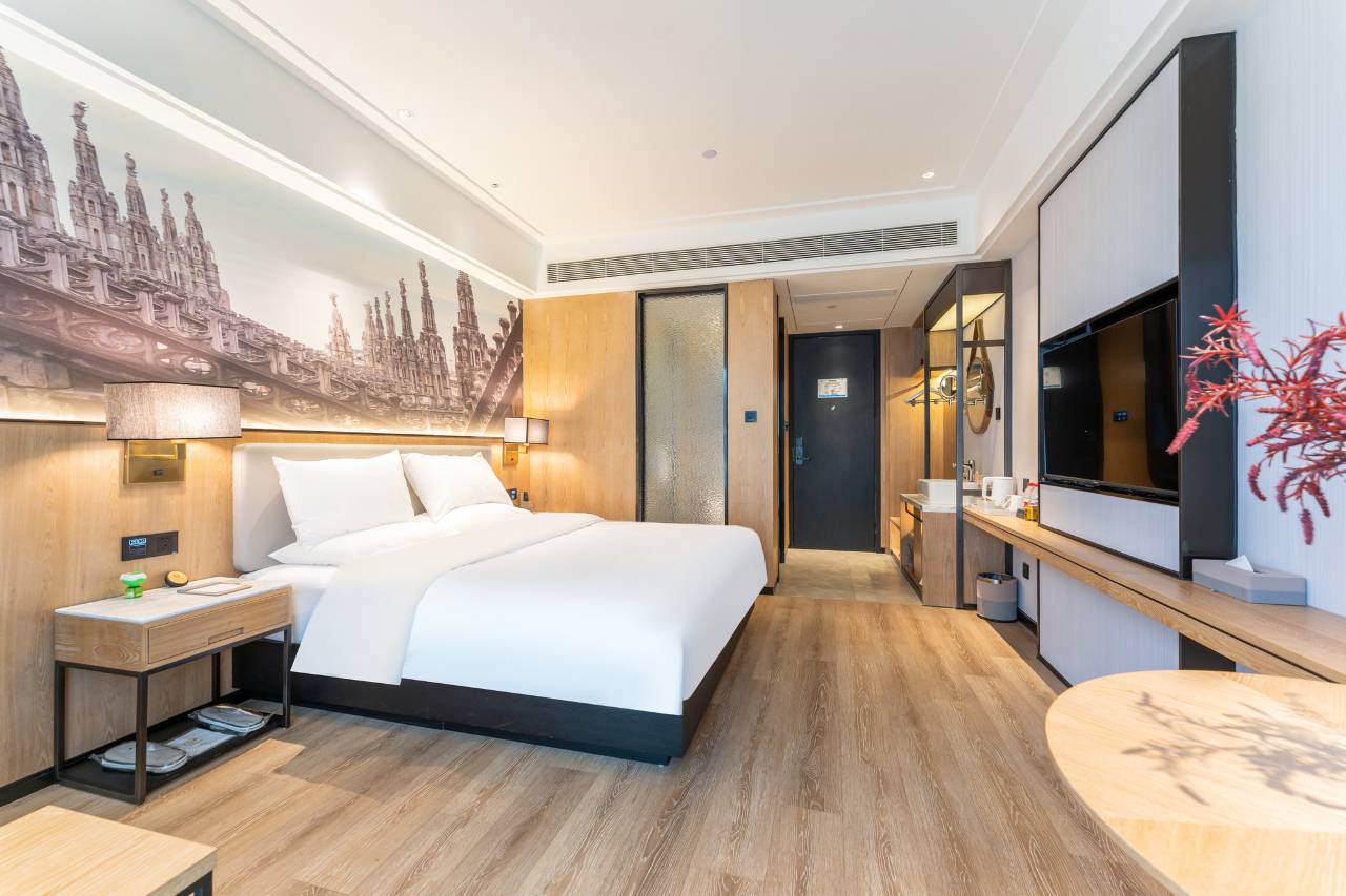 酒店商业配套齐全。配备地上停车场,大型充电桩,会议室,多功能厅等,客房采用智能化设备,设计新颖,宽敞舒适,精心挑选国内知名床垫,更配有轻柔亲肤自然床品,生物睡枕,知名卫浴设施,国际品牌中央空调,在这里无论独处,玩聚,还是商务小憩都能
