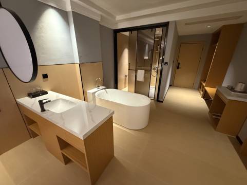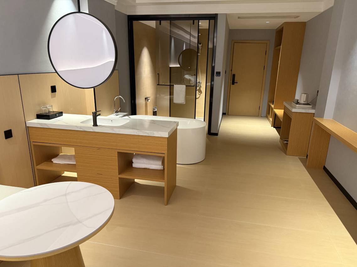 经常出差到这边,在携程上看到一家直线距离最近的酒店,立马选择入住一次,果然没让我失望,进门就感觉很暖,前台小哥服务态度非常好,又热情细心,,还要递上一杯热茶,很暖心,房间非常干净,很清爽,超级喜欢,周边吃喝玩乐也方便,晚上闲暇时间逛了一下海澜飞马水城,和体育公园 别有一番风味,推荐一下!