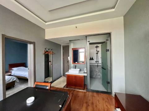 宾馆拥有多种房型,装修豪华典雅,提供24小时热水洗浴,24小时空调。客房独立WIFI,自助洗衣房,营养自助早餐,能够充分满足您的商务办公出行,家庭亲子出游,情侣休闲出游的一切需求。宾馆有独立的停车场,内设有充电桩,以便使用,可停放50余辆汽车。