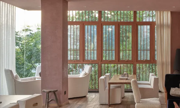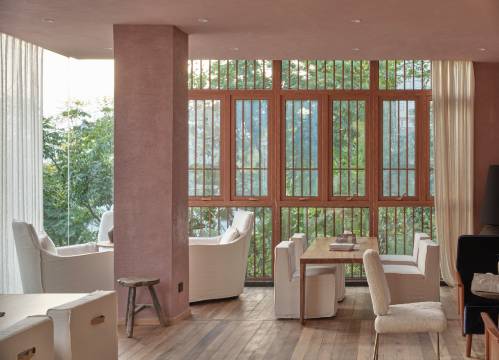 温州溪山外独立溪谷酒店在我们的年代独白中,有一个词,它不在往事的黄昏,也不在流失的岸边,它距离人间是最近的遥远,在山月,草木与溪谷的遣词造句中,将觅渡的诘问,答作自然的造物诗。从此,小盅浅醉,听风,坐忘,将风尘仆仆写作山山而川。 这是山外的哲学,向过路的人,归还一个完整的朝夕,于千万般行途中,宿集野往,自渡山河,在时间的叩问中,像山,成为你的陆地。 溪山外,诗是一把野火,烧成亢长的山河浪漫。 ● 溪山旅贴溪山旅居中,集成“森溪”“云回”“竹见”“浅山”“空野”独立侘寂风空间设计,构想听风坐忘的宿日美学。其中,溪山外与温州时下一线网红咖啡馆“醉酒的植物学与茶”联合设计溪山食贴餐厅、下午茶与露天酒吧,重新营造山中的自然料理与醉酒生活方式。同时,溪山外的空间中,设计构建了时间是座美术馆、迷雾泳池、半山花院(可定制野营、野餐、露天泳池派对等)、溪谷茶寮、天台泡池,半亩草塘……等多元生活域所,并为其设计温暖的秘密生活体验仪式,为溪山之外的时间,创造晚风习习、郁郁葱葱的旅居记忆。 ● 溪山地理溪山外,隅居大罗山景区,筑集半山,溪谷与林海,云山溪绕,风土朴素。距离市中心约15公里,位于温州市瓯海区茶山卧龙路1号,五美景园对侧。导航搜索:溪山外独立溪谷酒店(停车可至五美景园停车场,步行30米左右可至酒店)