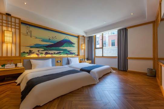 住宿带两张温泉票,一步搞定,不用单独再找酒店了,很nice。房间就在温泉池旁边,两层楼,泡温泉很方便。房间是日式风格,床和桌椅都是榻榻米,喜欢。