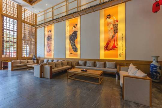 房间是日式榻榻米干干净净的,出门就是泡池带老人来住特别方便,泡池水清,还有鱼池也可以泡,就是早餐8点才吃有点晚,住了两天都因为一早要赶着去景区玩走的早没有吃,环境非常好