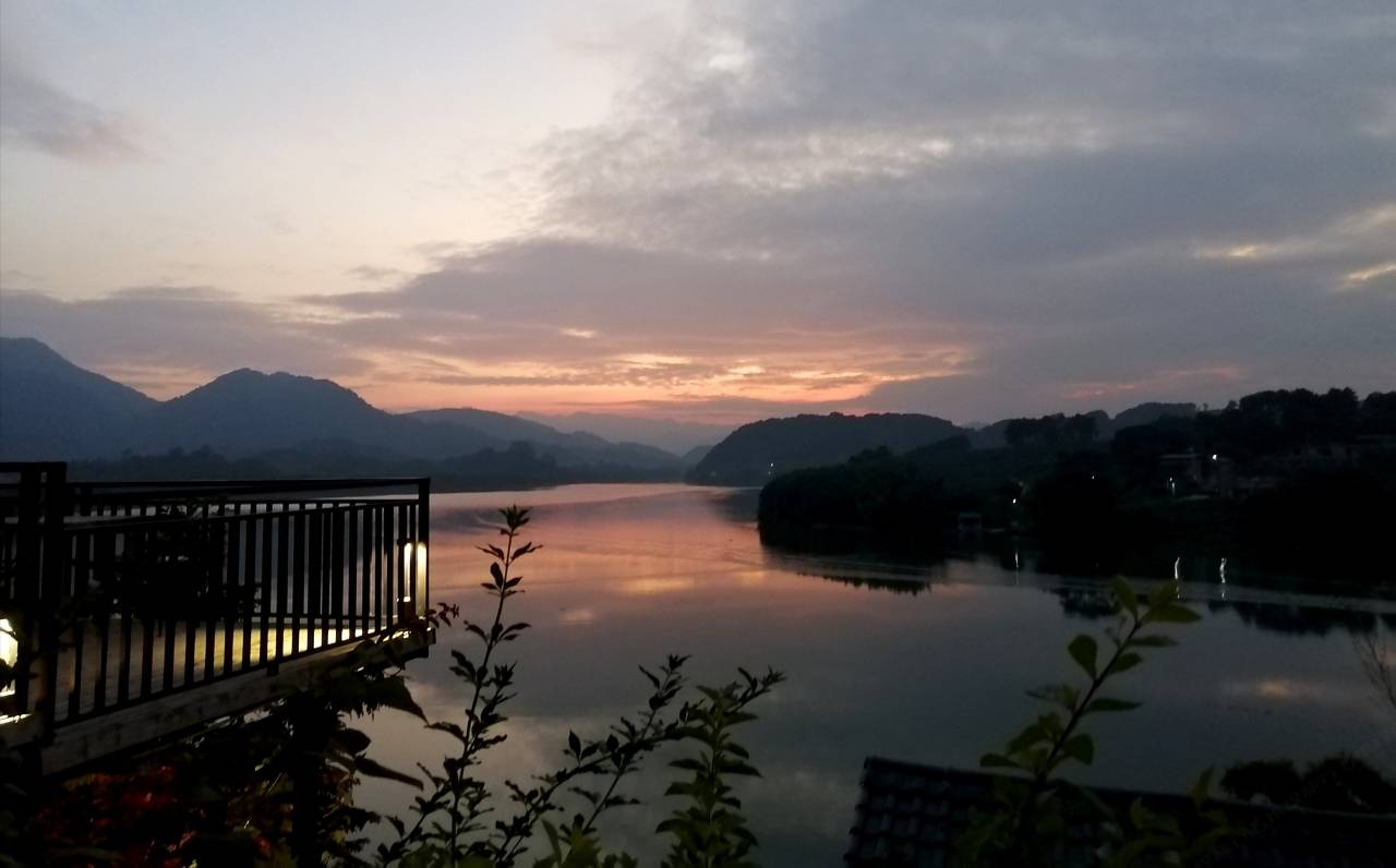 这次入住的房间是亲子房,可以住4个人,正好我们4个好朋友,房间很大,上下两层,有个正对江面的客厅,像塌塌米一样,可以一边喝茶一边看风景,很惬意。整个美宿临江而建,用古房子改造而成,是平乐看夕阳的绝佳地方,我们运气好,看到了最美的夕阳