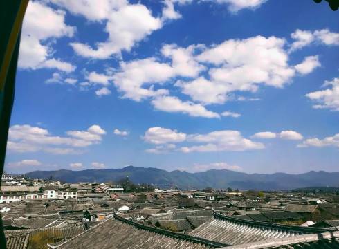 老板给我们安排了观景房,虽然走上去有点小慌,但是风景真得不错,可以俯瞰半个古城,房间也很整洁,距离北门大风车很近,出来不远就是古城内打卡拍玉龙雪山的位置(只可惜我们遇上阴天看不见雪山),总体性价比非常不错。