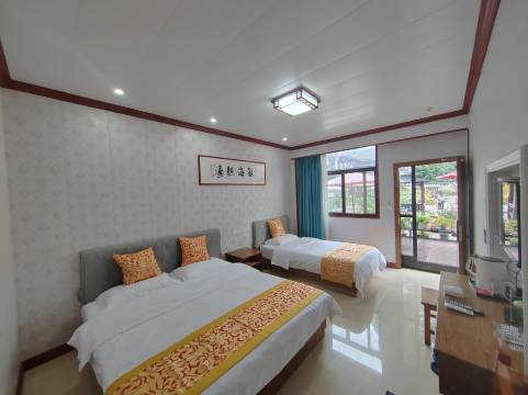 就在景区了,很方便。主人家很好哦,我家娃还睡了个很舒服的午休才退房。谢谢。还没到旺季,颇为安静。