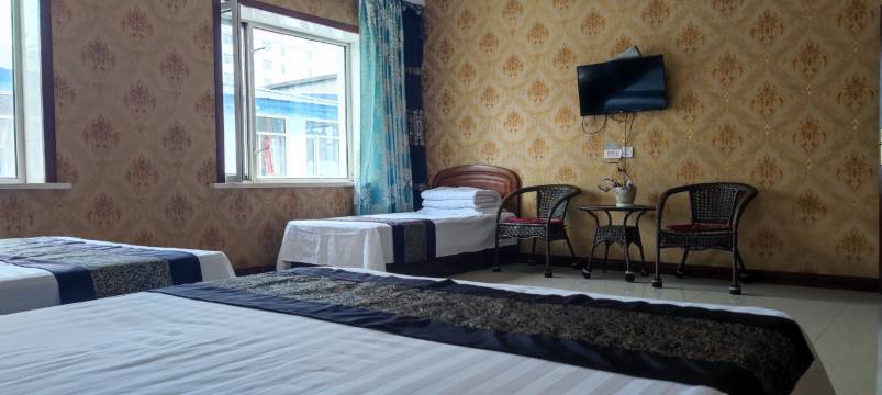 周边购物非常方便,店前买的蓝莓实惠又新鲜,店前的大骨面美味极了,老板娘爽朗好说话,房间干净,最喜欢前排房间,宽敞明亮,阳光充足。距离北极星广场很近,距离漠河客运站也很近,手动点赞。
