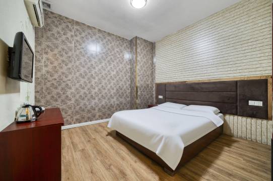在网上选了很久,选中这家宾馆,没想到淘到宝了!房间环境特别雅致,米色墙面搭配简约装饰画,整体布置温馨又舒服,木质地板质感也很好。卫生更是没话说,床品洁白无污渍,角落也擦得干干净净,完全挑不出毛病。而且酒店离当地热门景点超近,步行几分钟就能到,出行太方便了,下次来还选这家!
