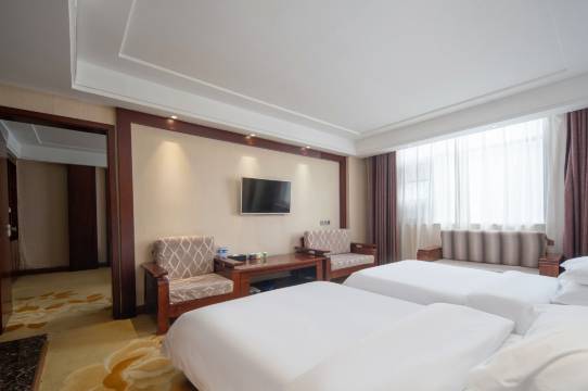 酒店拥有各类装修豪华、温馨舒适的客房100余间,集餐饮与一体的吃住无忧的有利条件,房内宽敞舒适,设施高档齐全,配有24小时热水淋浴、电话、光纤接入、无线上网设施;酒店还设有自助早餐,使每位宾客都能有宾至如归的感觉。