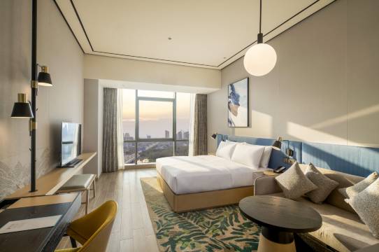 酒店整体设计融合商务的简约风格和休闲娱乐的轻快格调。以轻快明亮通透的空间设计,焕新精选服务型酒店入住体验。全日制花荟*味餐厅精选本地美食搭配天然装饰风格,营造灵活性的就餐空间。宾客可在花荟*品大堂吧享用精选饮品以及糕点,在悠闲的氛围中欣赏美景,放松身心。24小时好味亭提供美味点心和提神饮品,为宾客尽享便利,美味随手可及。入住即享免费咖啡、24小时免费健身房,24小时自助洗衣,为宾客出游更添便利,出行无忧。灵活多变的可拆分多功能会议室,配备可移动的65英寸智能触屏系统及先进视听设备,一应俱全的会议设施和专业的服务团队,将为每一场重要的商务会议或社会集会提供从开始到结束的一站式服务。