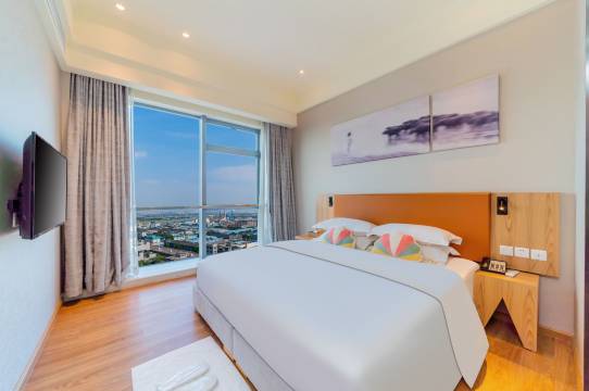 环境很不错,住在宏汇城大楼上,很高,观景视野不错,风景挺好的,又距离逢简水乡不远,10分钟车程。楼下就是繁华的商业街