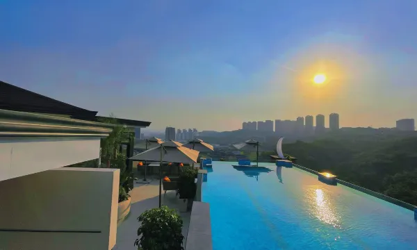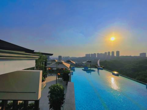 酒店顶楼有露天的游泳池,傍晚时分游游泳还蛮舒服的。大堂豪华气派,房间很舒服,宽敞明亮。早餐和下午茶出品都非常不错。还有专门提供记忆枕入睡。住的很舒服。