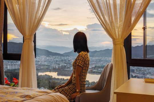 房间宽敞,装修简洁美感,用品有品质,私汤温泉♨、红酒🍷酸奶和百岁山。尤其观景阳台非常棒!可观日落和腾冲夜色,极美!满足了我关于民宿的想象!老板夫妇温和周到。分享我在阳台观的落日和夜色。