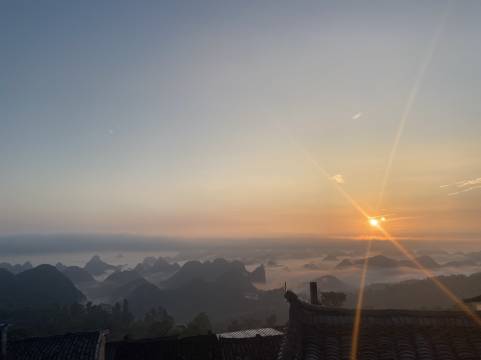 在最山寨的最后一排,群山一览无遗,二楼独享阳台,遗憾的是当天阴天,看不到日出!