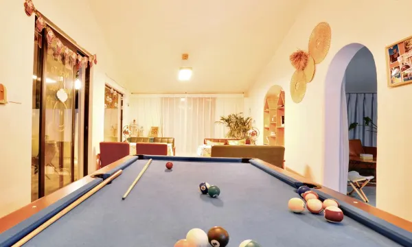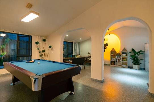 整个院子都是民宿区,里面有泳池,夏天应该可以游泳。双床房房间布置的很温馨!落地窗可以看到窗外风景。有ktv、台球等设施,ktv里还有落日氛围感灯。早餐很精巧!种类丰富可爱。值得推荐!下次有机会再来!