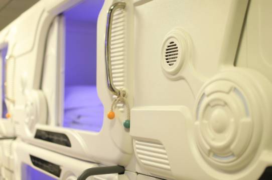 老板是一对夫妻,人挺好的,进前台的时候是个小孩和一只小狗狗在玩,都特别可爱。太空舱住着很舒服,里面设备齐全,被子也挺干净的。