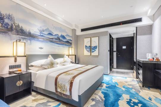 属于新中式融合东南亚风情装修风格的酒店,来这里睡一晚,给您一种东方特色服务体验,他将从视,听,嗅,味,触五方面给您带来全新体验的酒店,这里新中式融合和式以及东南亚风情的装修风格冲击着您的视觉,大厅充满中国风的古典音乐典雅而不失生动,边听着悠扬的音乐边品尝着独特的台湾高山红茶,阵阵白茶香环绕周身,放松心情点上一杯咖啡拿起一本书坐在大厅的书吧中缓解着旅途的疲惫,房间的贵妃榻,零压床垫,记忆棉枕给您带来不一样的深度睡眠。