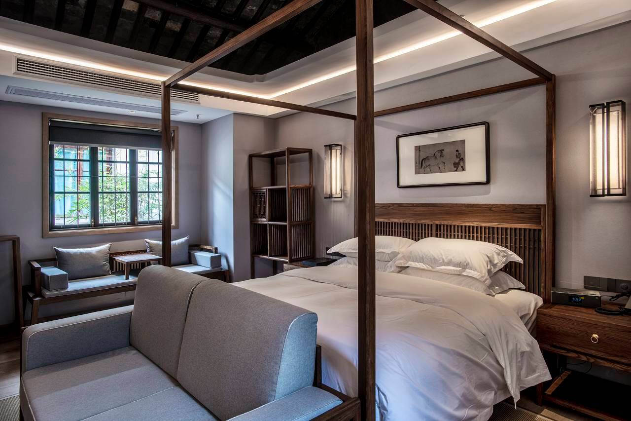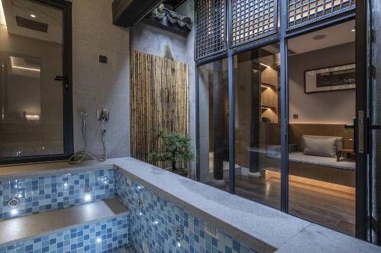 为典型的清末江南民居,三开四进院落大宅,上下两层砖木结构,设中式风格:福、禄、寿、喜、财五间客房,夹四座天井。赏竹翠、松青、兰幽、梅香。客房设施齐全、品质上乘、细节用心、服务俱佳。