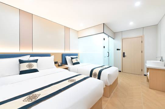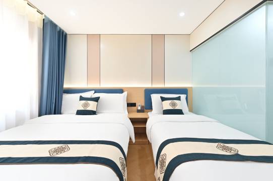 这家酒店双床房住着真舒服,家里每次来朋友都住这里,房间干净整洁,床软硬适中。卫生间也干净,热水来得快,晚上很安静。价格也实惠,给朋友定在这里方便他们玩,这里去天安门,大栅栏都很方便,旁边的公交车直接就去了,出门住店选这里真不亏。