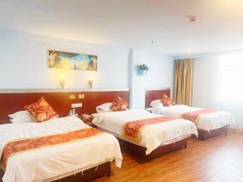 房间很大,有三人间,床很大,床垫很厚,很舒服,交通方便,楼下是商业街,吃饭方便,服务态度很好,卫生还可以,一大家子出门入住很合适。