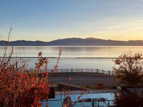晨起拉开窗帘,在床上看朝霞缓缓映红了苍山、洱海和云层,每一幕都是不可复制的流光溢彩,当太阳升起时洱海就变成了金银色的绸缎,晃得睁不开眼睛时,正好可以心满意足的拉上窗帘继续回个笼: