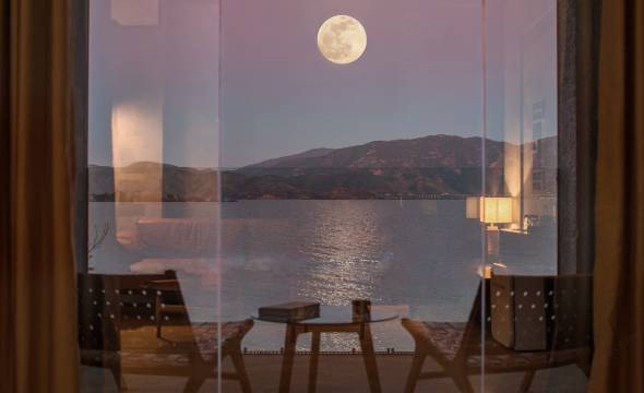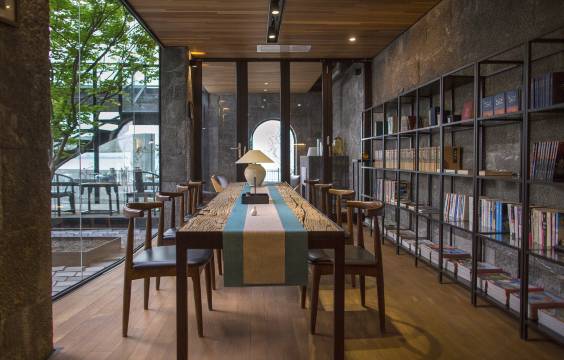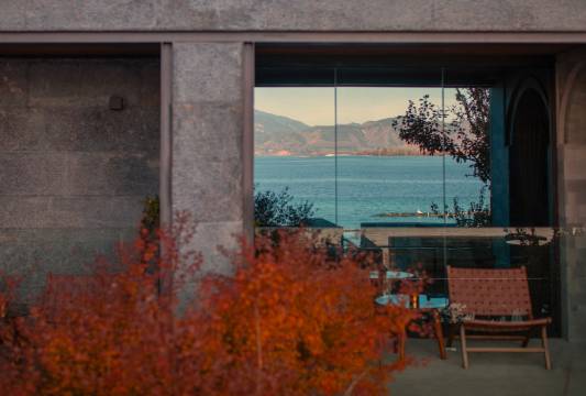 酒店坐落在沿海路上,景观毫无遮挡,酒店外观及内部设计都是我们喜欢的极简风,一层的公共区域院内有几颗我最爱的日本小叶红枫,放眼望去,每一个角落即是一个景观,养眼养心!