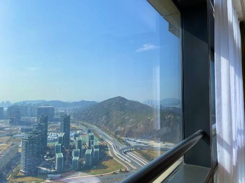 已经是多次预定这家酒店了,地理位置优越,横琴站和横琴24小时通关口岸都在旁边步行几分钟就到了。周围有多个商圈,各种美食应有尽有,地下通道走到对面是非常有特色的励骏庞都广场。房间里可以足不出户就能看到澳门景观,洗衣机冰箱都很齐全,卫生和热水也都非常好,很推荐入住。