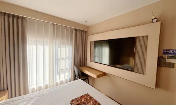 酒店环境整洁,房间宽敞明亮,床睡得很舒服。房间干净卫生,设施齐全,住着舒服。位置好、性价比在本地算很高了,服务态度好,细节做得很到位,出行停车都方便。推荐给来**故里游玩的朋友,值得入住!