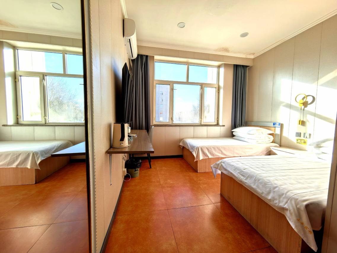本店位置好,临近齐齐哈尔火车站、客运站,门前有公交站。新床上用品干净舒适,备有大床房、双人房、三人房、家庭房、婚房、麻将房。24小时热水,空调开放,WIFI覆盖,院内免费存车,是您旅行,访友的不二选择。价格公道,全体员工期待你的光临!