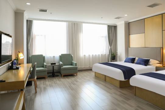 房间宽敞明亮 干净整洁 家庭房面积很大,外卖是机器人送餐 很方便,楼下停车位置很多 室内取暖也非常暖和,前台女孩 热情漂亮 下次还在这家住。