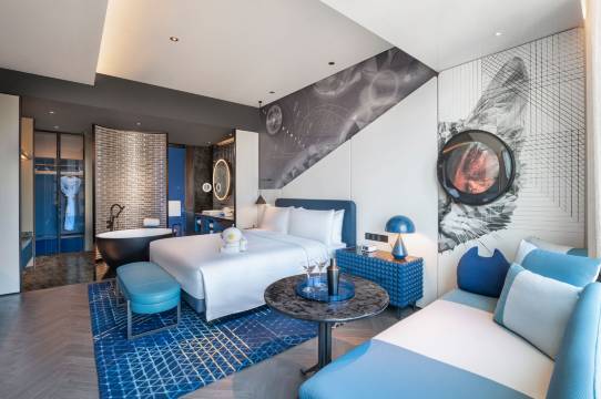 酒店拥有三百余间以太空幻境为灵感打造的客房及套房,开启别出心裁的星河穿梭般旅居体验。不论是激发活力的FIT有型健身中心、闲适宜人的WET®碧波泳池还是“星梦工厂”般的AWAY®水疗中心,都致力于让宾客摆脱日常烦忧,焕发活力精彩。TROPICS全日餐厅极具热带风情;灵感源自卡巴莱歌舞秀的星艳中餐厅,以及每一刻都焕然如“星”的RUNWAY酒吧,为您带来别出生面的深度沉浸之旅。超过1000平方米的活动空间,包括5间规模多样的会议室及多功能厅,均配有崭新前沿的会议设备与视听娱乐设施,是举办各类主题活动、大型会议、私人宴请或商务活动的理想之所。