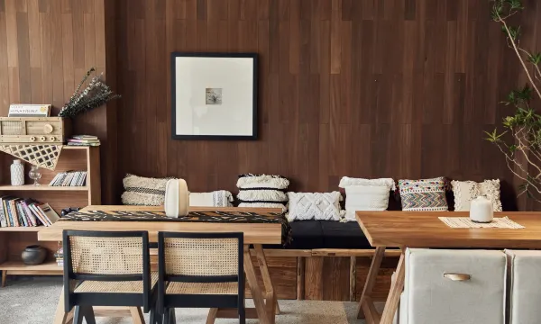 整体的装修是原木姹寂风