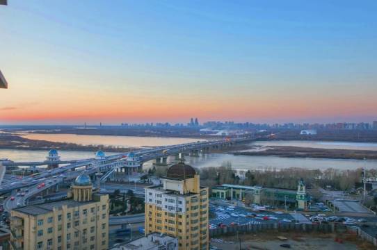 房间宽城舒适,高楼层能看到很好的风景,对面就是松花江