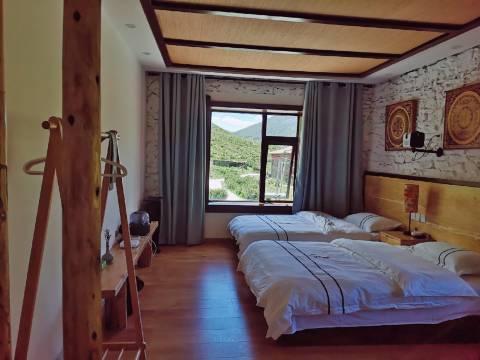客房有亲子观景房、全景大床房、观景大床和双床房可选择,房间配备无线网、投影仪娱乐设施,电暖气、电热毯取暖设备,加湿器、氧气瓶缓解高反,以及日常卫浴和生活用品。