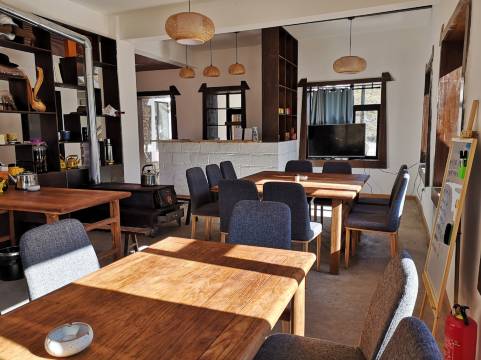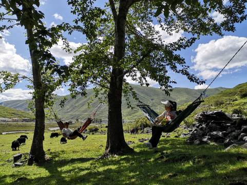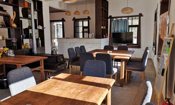 民宿整体装修融合藏式及现代简约风格,有单独的客厅、餐厅、书房和庭院,餐厅可提供早餐、简单的藏餐、火锅和丰富的湘菜,自家庭院和房前大片草地可露营、可篝火,不远的山下河边,皆可撒野。