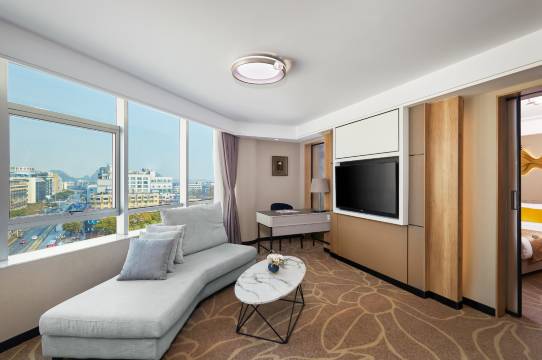 酒店有桂林新晋打卡点,市中心极佳的360度观景台,象鼻山、日月双塔、漓江、独秀峰等标志性景点一览无余。在这里,您可以体验到千峰环野立,一水抱城流的桂林山水精髓。