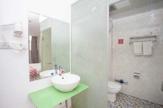 设施:过道布置较为简约,里面的洗手台和卫生间符合这个价位的标准,只是房间不怎么隔音睡眠不好的人要备一副耳塞~