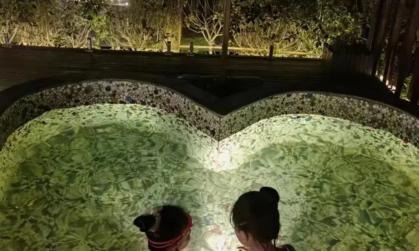 房间干净,入住前空调提前打开了,店家很贴心;温泉水池小朋友很喜欢,早餐也很丰盛,工作人员服务周到,贴心。